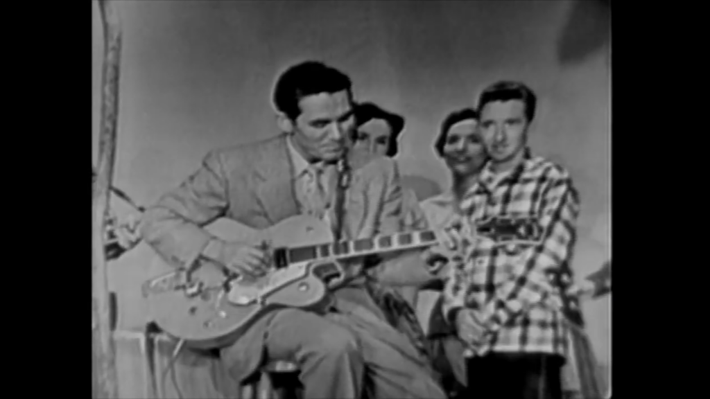 Historically, 1955 was a pivotal year when Chet Atkins began applying groundbreaking fingerstyle techniques to popular music. The “class” of this performance lies in its exquisite subtlety: he didn’t need a large band; with just an electric guitar, Chet effortlessly handled the bass rhythm, harmonic accompaniment, and main melody all by himself. In the space of the Grand Ole Opry—the “sanctuary” of Country music—his guitar brought a fresh, more modern, more sophisticated feel, yet still retained the authentic soul of Southern American music.