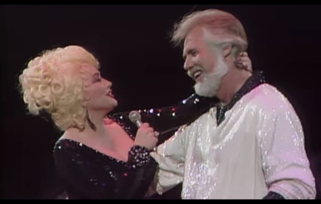 Visually, the stage presence reinforces the song’s meaning. There are no dramatic gestures, no theatrical movement. Kenny Rogers and Dolly Parton stand close, attentive to each other, as if sharing a private conversation rather than performing for a crowd. The audience becomes a witness rather than a participant, invited to listen rather than applaud.