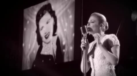 The staging reinforced this idea of time folding in on itself. Bathed initially in black and white, Rimes stood before a vintage microphone as archival imagery of Cline loomed behind her. The visual language was unmistakable. This was not imitation, but invocation. As the medley moved through classics such as Crazy, Walkin’ After Midnight and Sweet Dreams, the atmosphere shifted from controlled homage to something far more fragile.