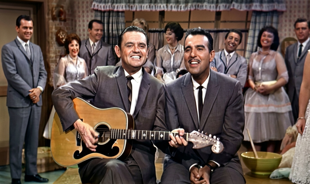 In the history of American television, there have been moments where the combination of exceptional individuals has left an enduring mark. The November 24, 1960 broadcast of The Ford Show is a prime example. Viewers witnessed a masterful collaboration between the show’s host – the legendary baritone Tennessee Ernie Ford – and the “architect” of guitar, Merle Travis. With pieces like “Fat Gal” and “Smoke That Cigarette,” they not only delivered music but also recreated a whole world of elegant and generous American culture.